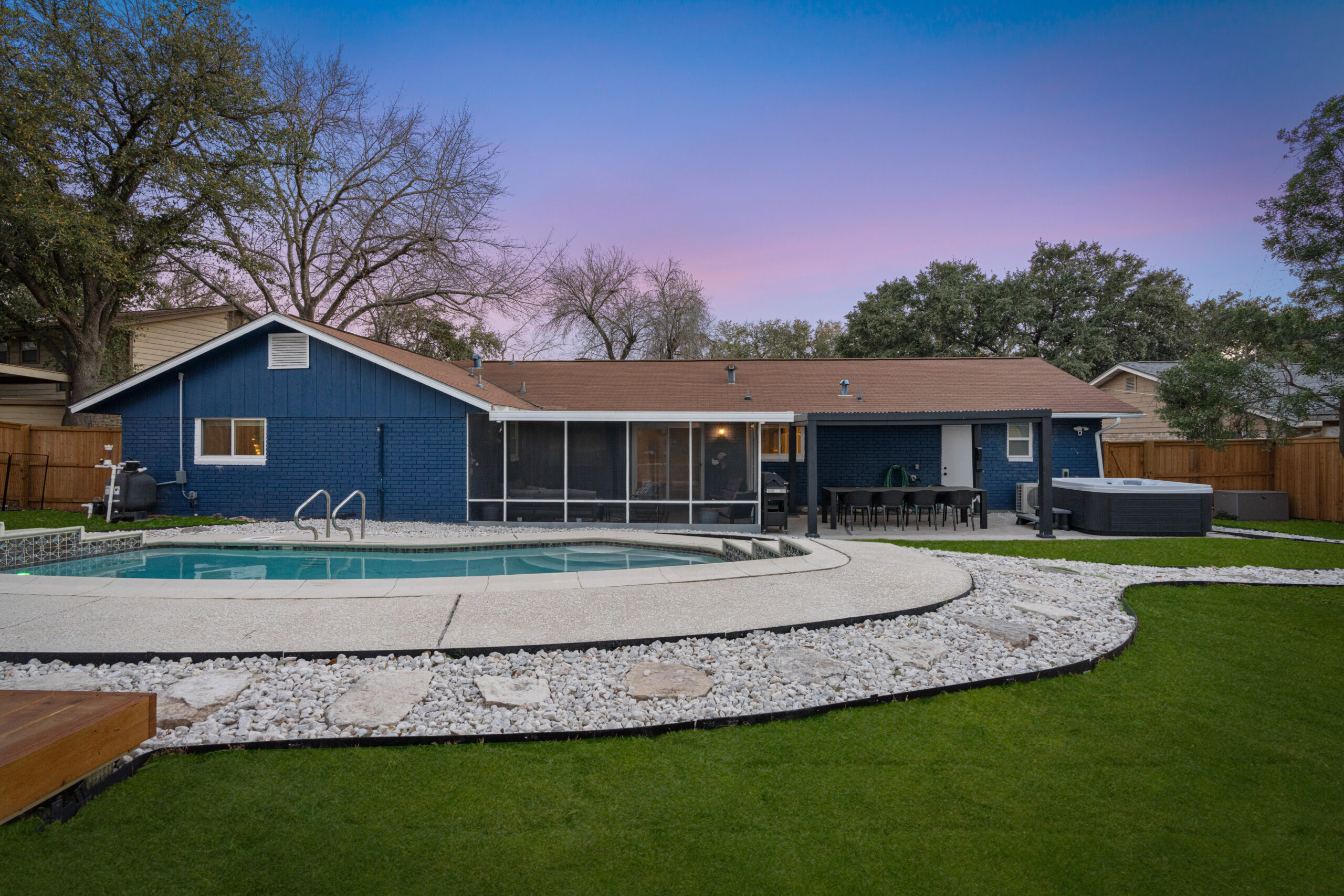 House worthy of a photo shoot. lots and lots of charm. comfortable and spacious, tall ceilings, chandeliers, modern chairs, nature mural, too much to list! The garage kept our cars nice and safe from everything! super helpful and responsive host.